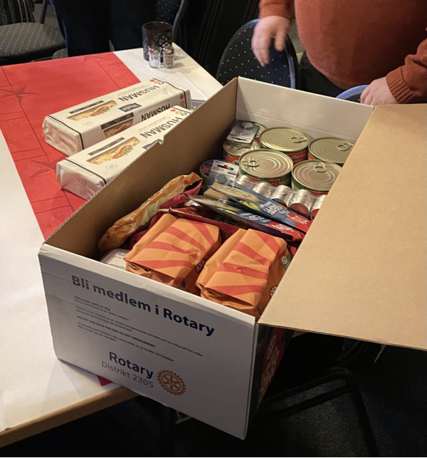 På møtet 9. desember hadde vi besøk fra Raufoss Rotaryklubb representert ved Henning Lindseth og Kirsten Schjerven. Rotaryklubben på Raufoss har fulgt opp tanken om egenberedskap. De fortalte oss om prosjektet "Beredskapskasser". En slik kasse inneholder produkter som skal dekke behov over en kortere periode ved krig, strømbrudd, naturkatastrofer mv. Kassa inneholder en del holdbare matvarer, lys, fyrstikker, batterier osv.