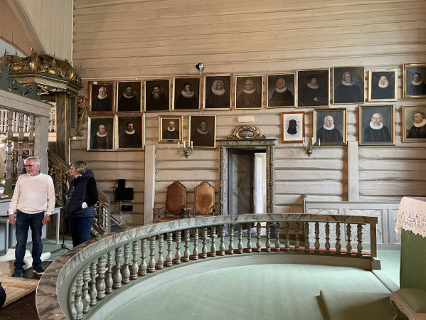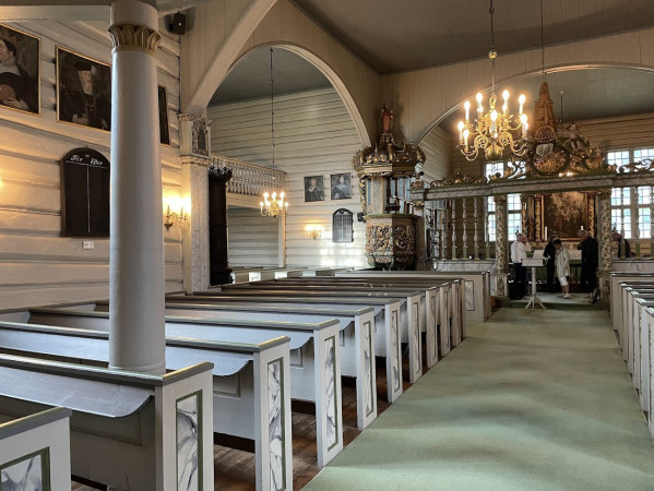4. juni var vi på besøk i Fluberg kirke. Nils Terje holdt et interessant foredrag for oss om kirkens historie, om restaureringen av kirken og om prestene som har tjenestegjort der. Det er mange malerier i kirken både av prestene og av dansk-norske konger. Eggert Munch malte alterbildet, og hadde med seg en ung Peder Aadnes som lærling. I krypten under kirken ligger det mange kister.